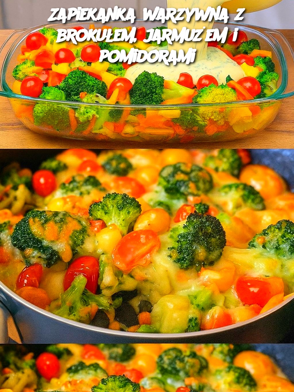 Zapiekanka warzywna z brokułem, jarmużem i pomidorami